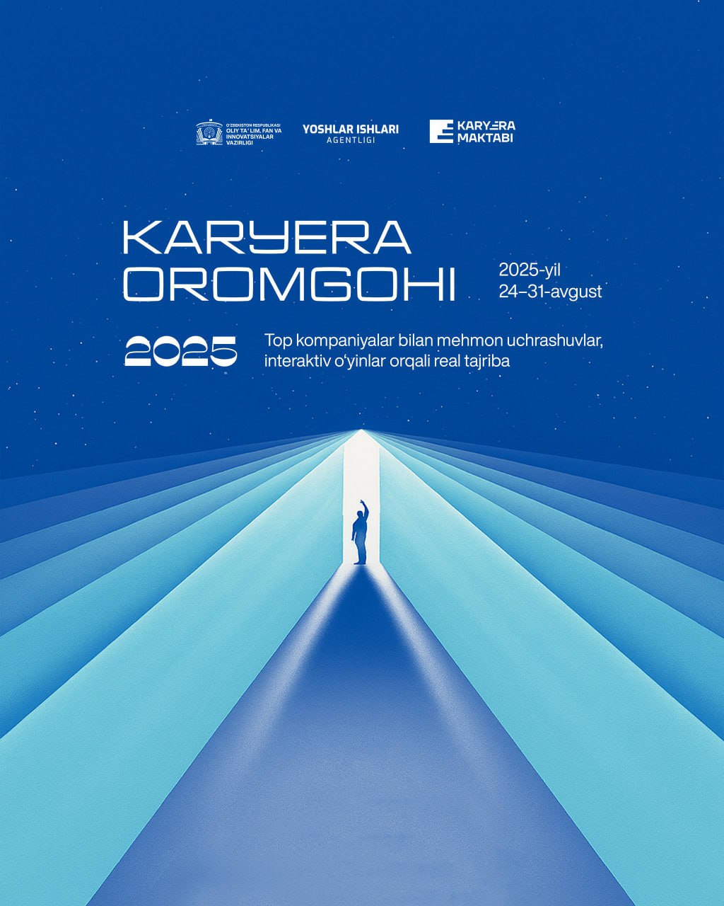Joriy yilning 24–31-avgust kunlari Bo‘stonliq tumanida tashkil etilayotgan “Karyera Oromgohi 2025” – bu 2- va 3-bosqich talabalari uchun mo‘ljallangan 7 kunlik bepul o‘quv oromgohi bo‘lib, sizga o‘z yo‘lingizni topishda amaliy yordam beradi.