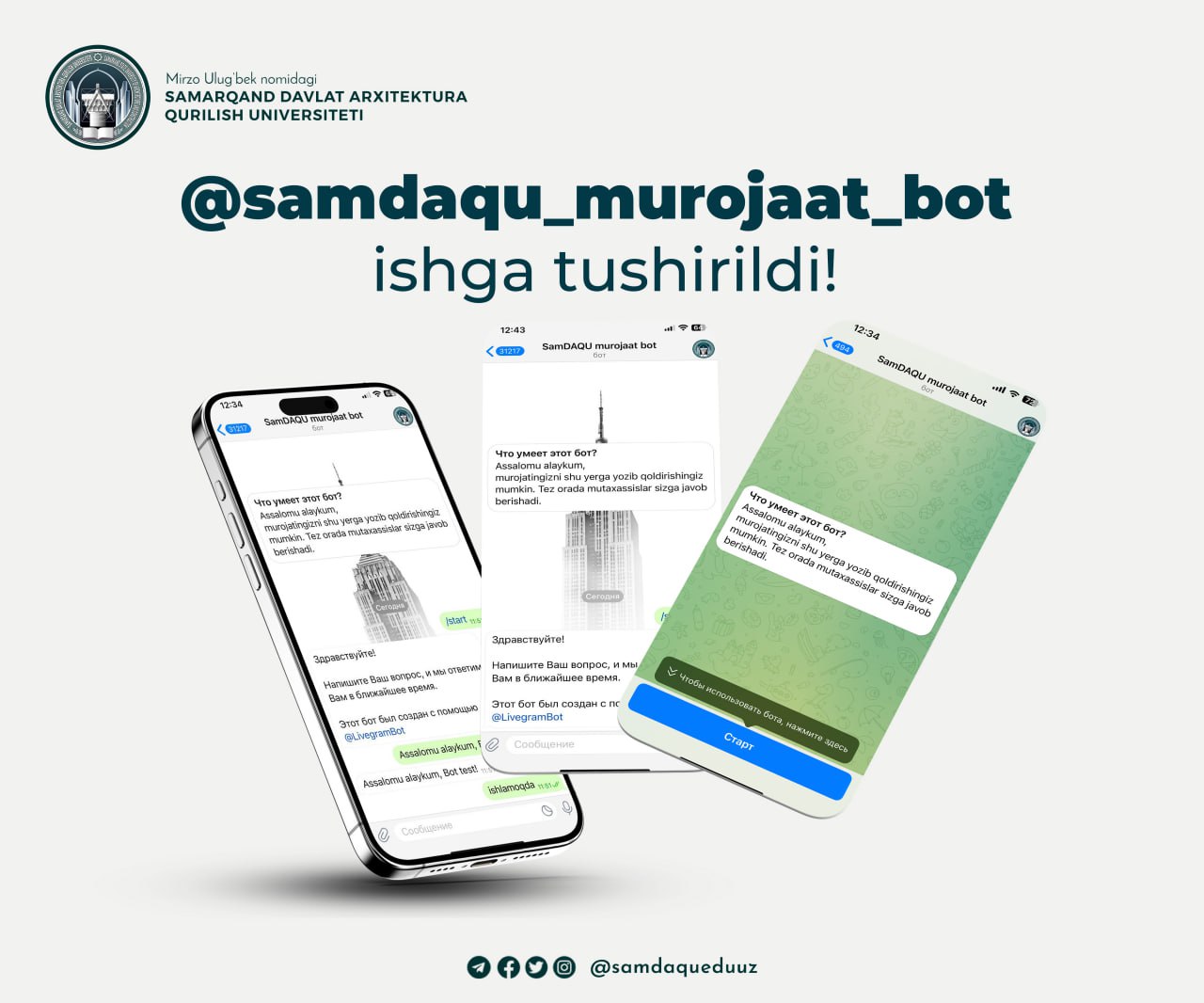 Talabalarga qulaylik yaratish maqsadida @samdaqu_murojaat_bot ishga tushirildi
